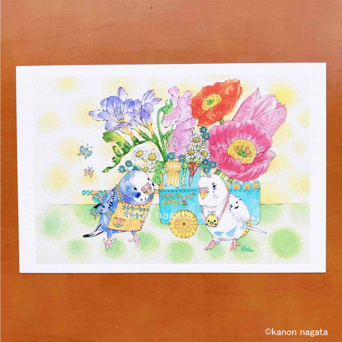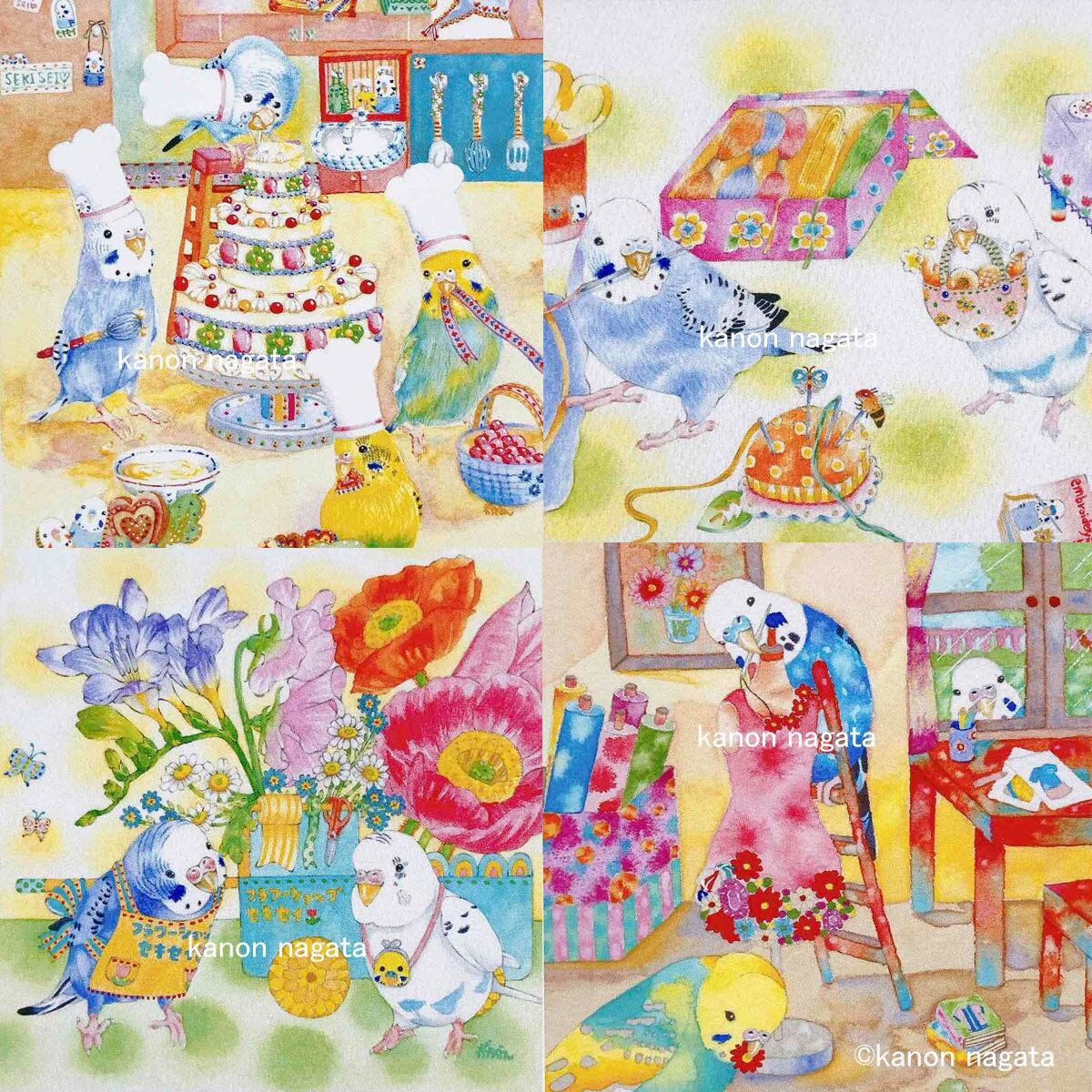 永田かのんが透明水彩絵の具で描いたセキセイインコのイラストをもとに、