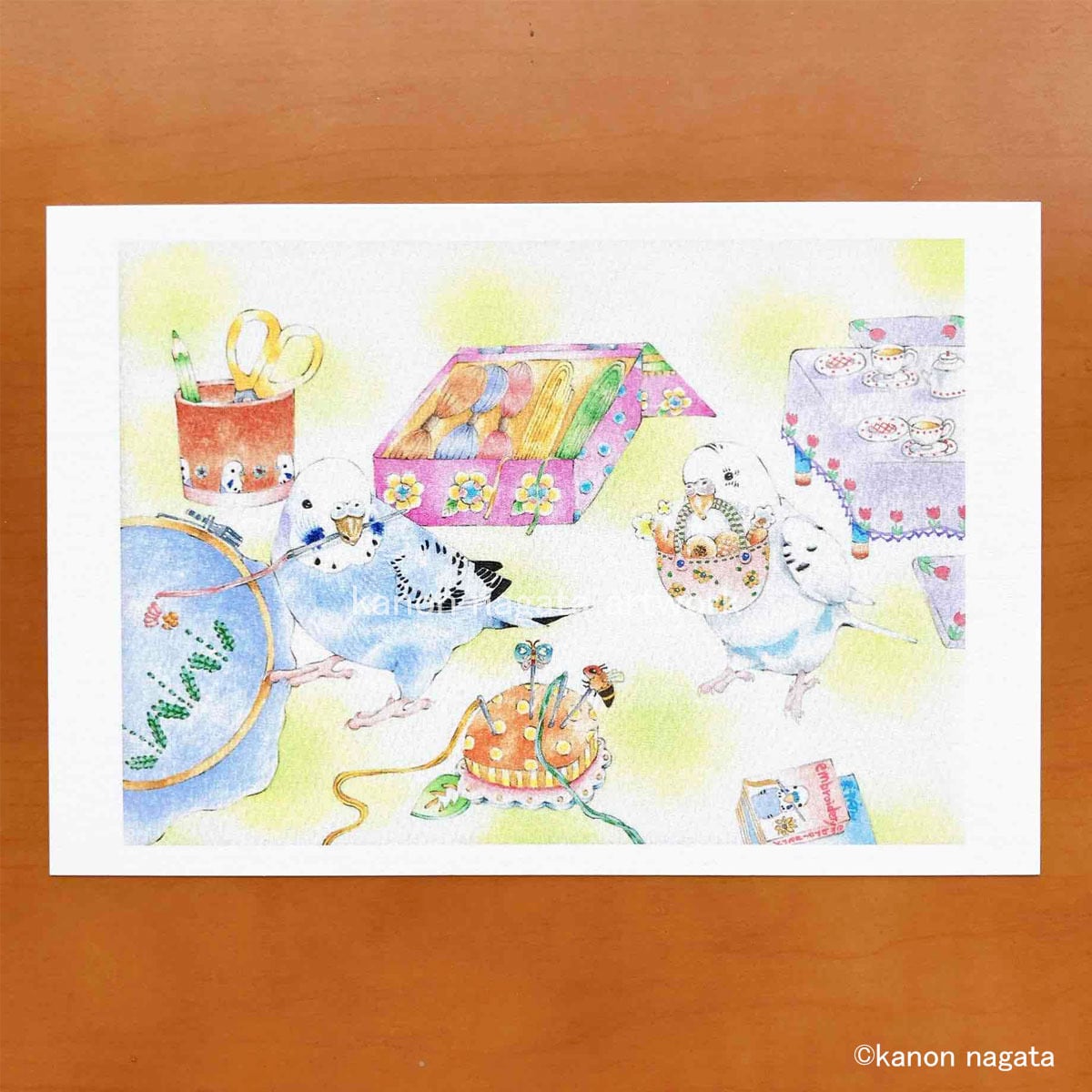 こちらは、お仕事しているセキセイインコさんの絵柄になります。