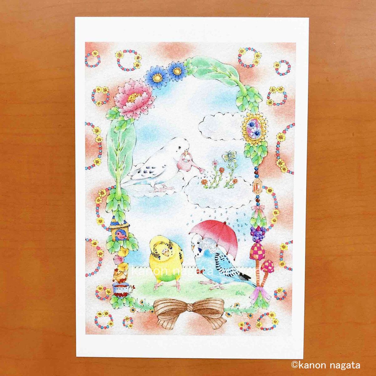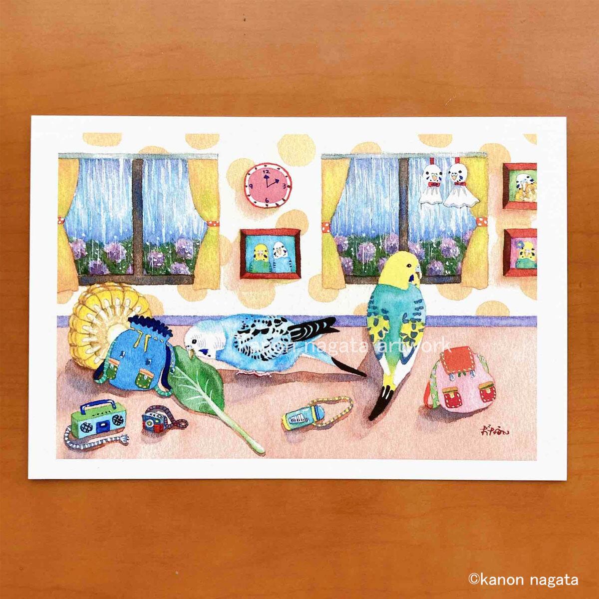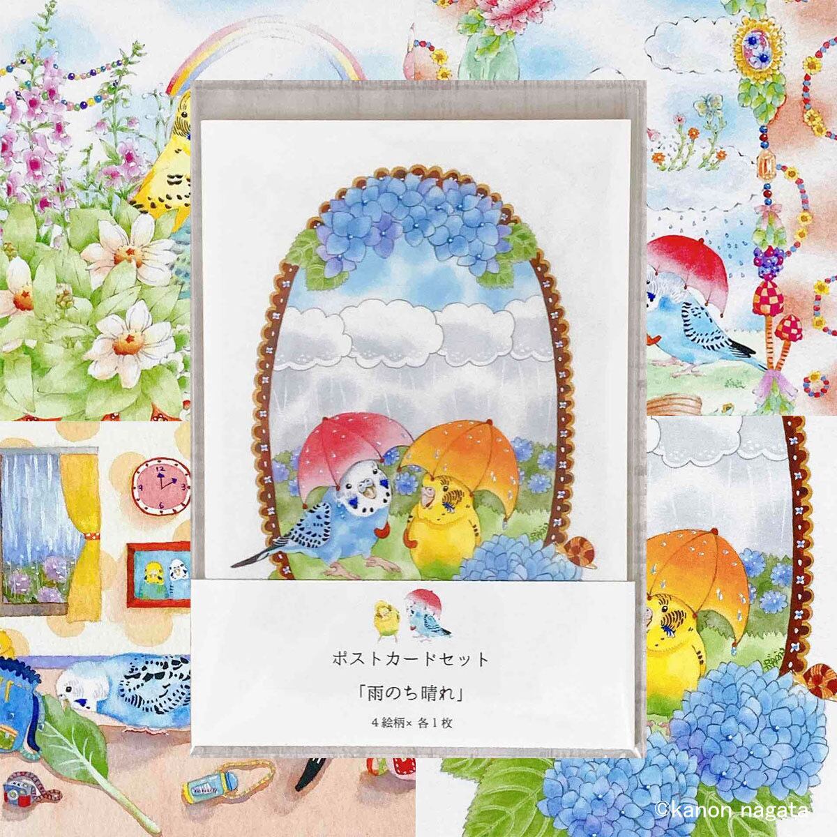 インコのポストカード4枚「雨のち晴れ」