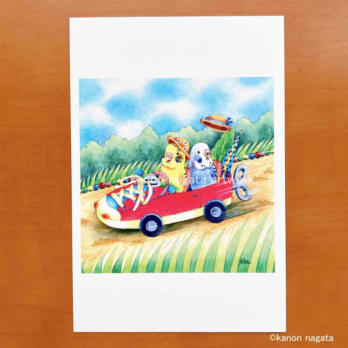 透明水彩絵の具で描いたセキセイインコのイラストをもとに、