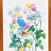 透明水彩絵の具で描いたセキセイインコのイラストをもとに、