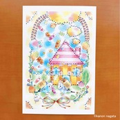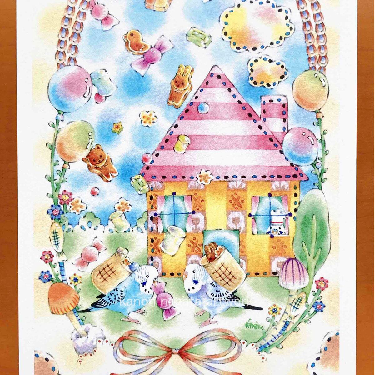 透明水彩絵の具で描いたセキセイインコのイラストをもとに、
