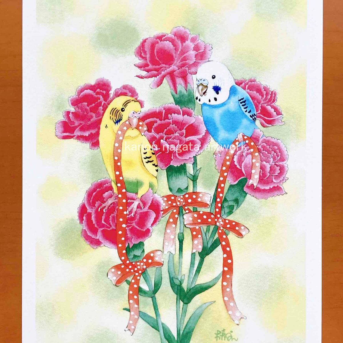 透明水彩絵の具で描いたセキセイインコのイラストをもとに、