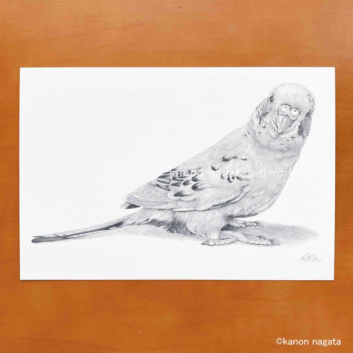 鉛筆で描いたセキセイインコのイラストをもとに、