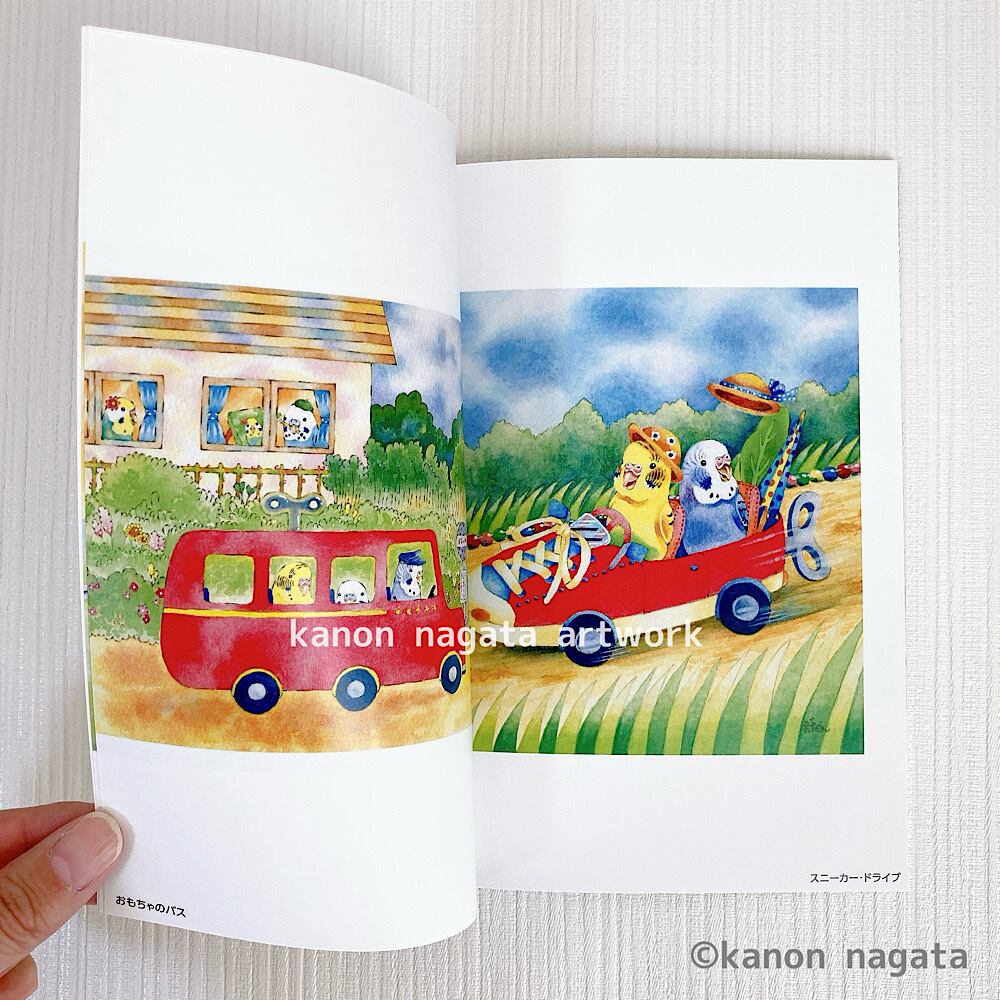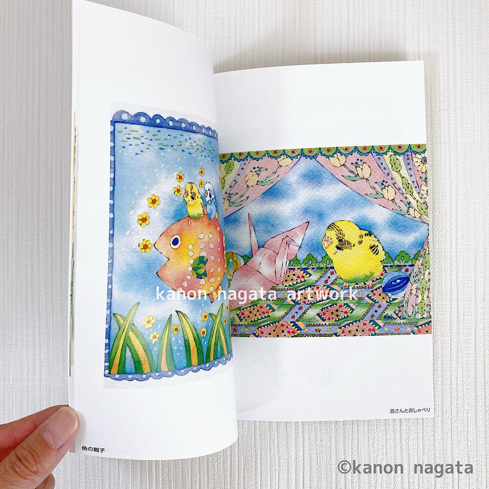 全ページ・セキセイインコのイラストで構成されています。